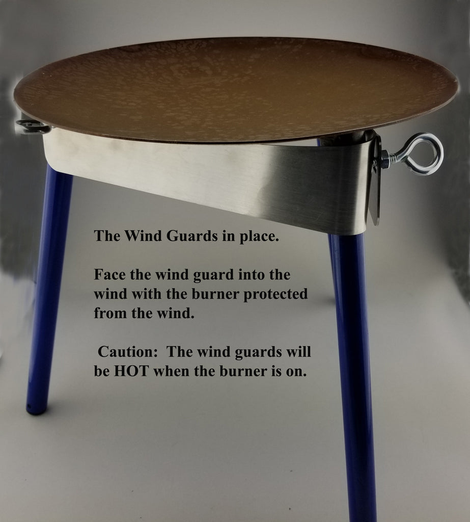 TemboTusk has designed a simple wind shield to work with the Adventure Skottle Grill.  It comes in two stainless steel wind guards that attached to the leg sockets and is held in place by the eye bolts.